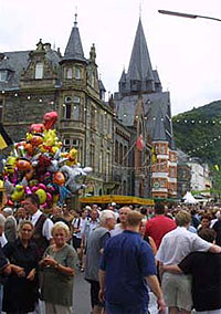 Am ersten Wochenende im September findet in Bernkastel-Kues das größte Weinfest an der Mittelmosel statt. Freunde des Weines vergnügen sich auf der Weinstraße, die Kinder zieht es mehr auf den großen Rummelplatz.